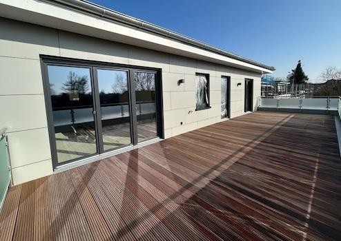 Diese exklusive Penthousewohnung lässt keine Wünsche offen. Sie erreichen die Einheit über den im Objekt vorhandenen Fahrstuhl oder durch das modern gestaltete Treppenhaus. Von der Diele gelangen Sie in das helle, großzügige Wohn- und Esszimmer mit einer direkt angrenzenden und zum Wohnbereich offen gestaltbaren Einbauküche (im Kaufpreis nicht enthalten). Ein Abstellraum als Hauswirtschaftsraum mit Waschmaschinenanschluss, ein Schlafzimmer mit angrenzendem Tageslichtbad, ein weiteres, vielseitig nutzbares Zimmer sowie das Gästebad runden den durchdachten Grundriss dieser komfortablen Wohnung ab. Auf der großen, nach Süden ausgerichteten Dachterrasse können Sie zudem schöne Stunden verbringen und finden Ruhe und Erholung. Weiterhin steht ein eigener Pkw-Stellplatz nebst einem Abstellraum für Fahrräder, Golfbag, etc. zur Verfügung. An dem Stellplatz ist zudem eine Vorbereitung für die Installation einer Wallbox vorhanden.