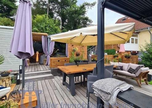 Auch die aufwendige und idyllische Außenanlage des Grundstücks lässt keine Wünsche offen.
