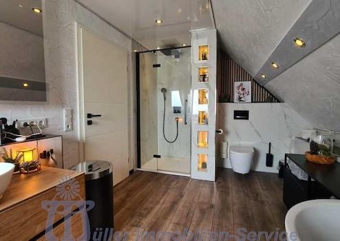 Sämtliche Fußboden-, Wand- und Deckenbeläge wurden in hochwertiger Ausführung erneuert, neue weiße Innentüren sowie eine Milchglastür wurden eingebaut.