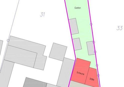 Zum Grundstück gehört eine Grundstücksfläche mit einer Größe von 973 Quadratmeter. Das Wohnhaus verfügt über 86 qm Wohnfläche, hat aber ebenerdig und im Dachgeschoss Erweiterungspotenzial. Das Haus ist um die Jahrhundertwende errichtet worden und befindet sich in einem teilweise modernisierten Zustand. Es handelt sich um einen früheren kleinen Bauernhof mit Wohnhaus, überdachter Einfahrt, einem kleinen Innenhof mit Stallungen und einer Scheune, mit Durchfahrt in den Garten. Die Wohnräume befinden sich im Erdgeschoss des Wohnhauses. Es handelt sich dabei um eine Veranda, einen Flur, von dem links ein Wohnzimmer abgeht und eine Küche, mit einer Kohlekochstelle.