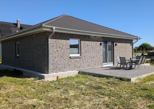 Dieser neuwertige Bungalow, Baujahr ca. 2023, mit einer Wohnfläche von ca. 90 m² überzeugt durch seine idyllische Lage und ermöglicht Ihnen komfortables barrierefreies Wohnen.
