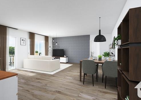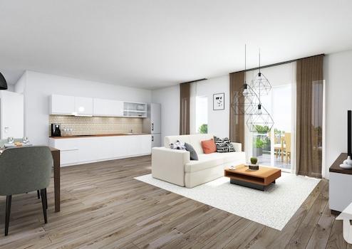 Die in den Innenvisualisierungen dargestellten Ausstattungen (Bodenbeläge, Fliesen, Lampen, Möbel, Tapeten etc.) bilden nicht die Realität ab. Sie dienen lediglich dazu, sich ein Bild von den Räumlichkeiten zu machen. Die im Exposé beigefügte Baubeschreibung enthält die eigentlichen und verbindlichen Ausstattungsmerkmale.