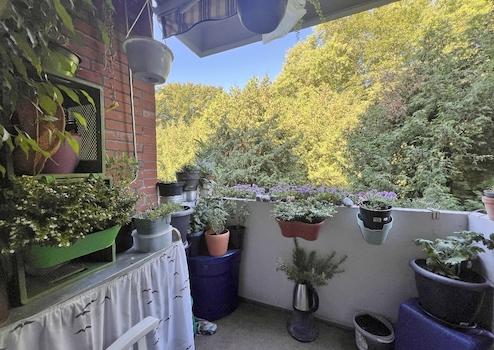 In dem geräumigen Wohn- und Essbereich lässt sich problemlos eine Wohnlandschaft und ein Esstisch platzieren. Die große Fensterfront ermöglicht den Blick ins Grüne und lässt viel Tageslicht in den Raum. Der gemütliche West-Balkon lädt zum Feierabend die Sonnenanbeter ein.