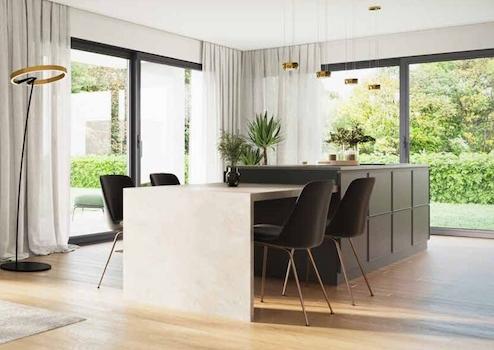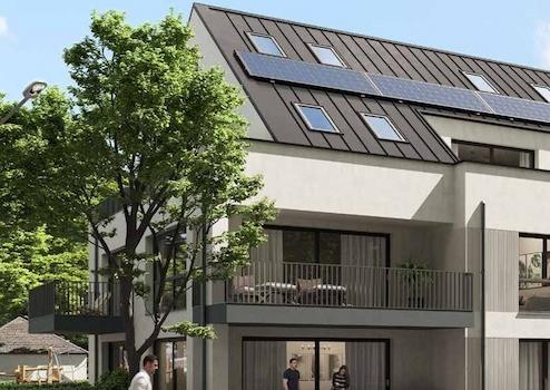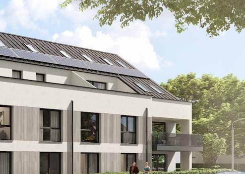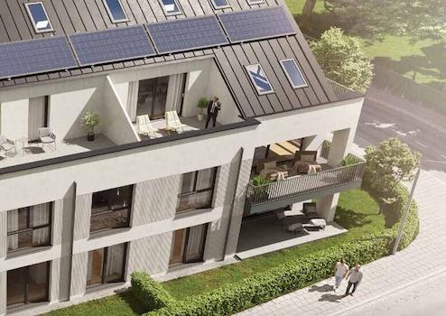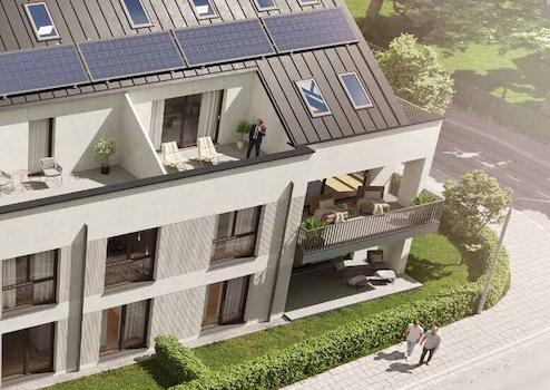 Herzstück aller Wohnungen ist der offene Koch-/Ess-/Wohnbereich mit Zugang zur Terrasse bzw. Balkon oder Loggia, eine Wohlfühloase zwischen Architektur und Natur. Ein Aufzug ermöglicht einen schwellenfreien Zutritt ins Untergeschoss.