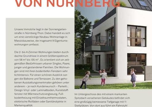 In naturnaher Umgebung entsteht "Am Schweigeracker 1, 90425 Nürnberg-Thon" bis Ende April 2026 eine moderne Wohnanlage mit 9 Wohneinheiten. Diese wert- und nachhaltig konzipierten 2-/3-/4 Zimmer-Wohnungen mit einer Größe von ca. 60 qm bis ca. 137 qm sind ideale Investitionsmöglichkeiten für Kapitalanleger, Familien oder Paare, die einfach nur "großzügig wohnen" möchten. Sie punkten mit einem durchdachten Schnitt, stilsicherem Ambiente und enorm viel Platz.