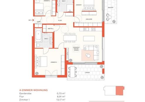 * Terrasse, Loggia oder Balkon (je nach Wohnung)