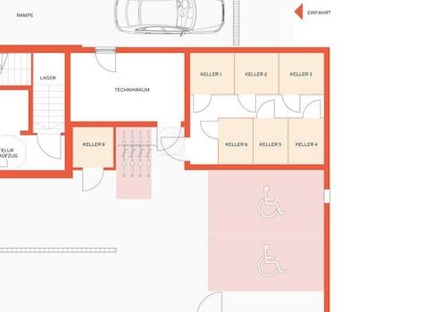 Je nach Größe der Wohnung sind ein oder zwei Tiefgaragenstellplätze vorgesehen, welche für je 35.000 Euro zu erwerben sind.