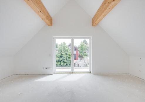 In der Fassade bestimmen überwiegend bodentiefe Panoramafenster das Bild – sie lassen erahnen, wie einladend lichterfüllt sich jeder Raum präsentieren wird.