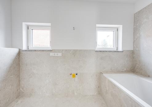 - Design-Bäder mit Feinsteinfliesen, Handtuchheizkörpern und hochwertiger Badkeramik von Villeroy & Boch sowie Armaturen von Hans Grohe