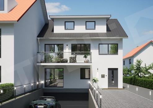 Dieses Streif Mehrfamilienhaus mit Tiefgarage (Abbildung mit Zusatzausstattung) in der besonders energiesparenden und förderfähigen Ausführung KFW 40 Plus