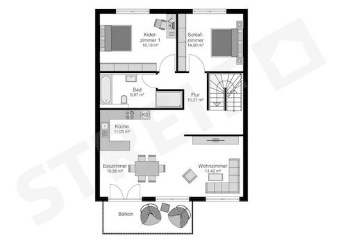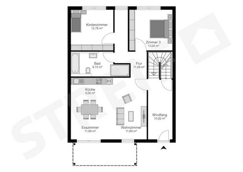 Alle Streif Häuser sind auch mit einer anderen Ausstattung oder Technik erhältlich. Der Preis versteht sich zzgl. Erwerbs- und Baunebenkosten. Grundriss und Ausstattungsänderungen sind möglich.