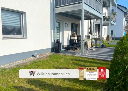 - große Terrasse mit kleinem Garten