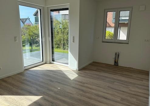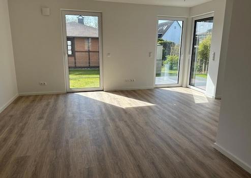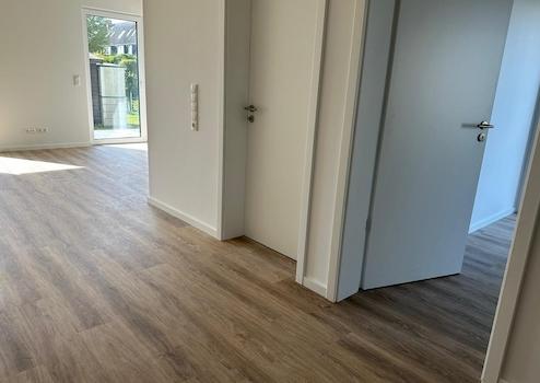 Die Erdgeschoss-Eigentumswohnung Nr. 2 im Haus 2 verfügt über einen Flur/Wohnbereich mit Anschlussmöglichkeit für eine offene Küche, Zugang zur Terrasse, Abstellraum, Schlafzimmer mit Terrasse und ein Tageslichtbad mit Dusche und WC.