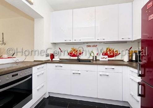 Modernes Apartment mit einem bequemen Doppelschlafsofa, einem separaten Einzelbett und einem moderne LCD-TV. Die separate Küche ist mit einer hochwertigen Einbauküche inklusive Spülmaschine, Cerankochfeld, Backofen, Mikrowelle, Kühlgefrierkombination, Senseo-Kaffeemaschine und einer Grundausstattung an Geschirr und Kochutensilien ausgestattet. Sie ist zum Wohnraum hin mit einer Ess-Theke und 3 modernen Barhockern versehen. Der große Süd- Balkon lädt zum Relaxen ein. Sie werden erstaunt sein, wie ruhig Sie inmitten der Stadt wohnen. Das geschmackvolle, hochwertige Badezimmer bietet eine Badewanne mit Duschabtrennung, ein Hänge-WC und einen weißen Waschtisch mit Kosmetikschrank. Eine Waschmaschine steht hier zur alleinigen Nutzung. Bettwäsche und Handtücher werden gestellt. Eine Abstellkammer wird als Kleiderschrank genutzt. Die Miete beträgt 900,00 € für eine Person inklusive aller Energie- und Nebenkosten und der Internet-Nutzung. Die Endreinigung zahlt der Mieter. Sie erfolgt nach Aufwand und wird mit € 35,00 pro Stunde abgerechnet.