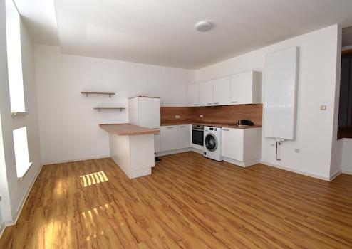 Saniertes Fachwerkhaus, Erdgeschoss, Diele, Bad mit Dusche, WC, Handwaschbecken, Fenster und Waschmaschinenanschluss, offener Küchenbereich, Kinderzimmer, Schlafzimmer