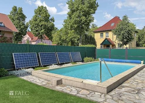 Als absolutes Highlight erwartet Sie im Außenbereich ein großzügiger Pool mit den Maßen 8 x 4 Meter, der an sonnigen Tagen zum Schwimmen und Entspannen einlädt. Für eine nachhaltige und kostensparende Energieversorgung sorgen vier leistungsstarke Solarpaneele. Ein Whirlpool rundet das Wellness-Angebot ab und verspricht Erholung pur.