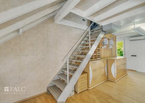 Zu dieser Wohnung gehört auch das Studio im Dachgeschoss, das sich ideal als Atelier, Hobby- oder Arbeitsraum eignet.