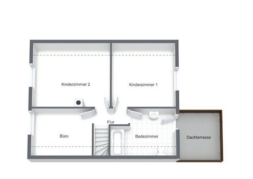 Dachgeschoss: Flur, Badezimmer, Dachterrasse, Büro, 2 Kinderzimmer