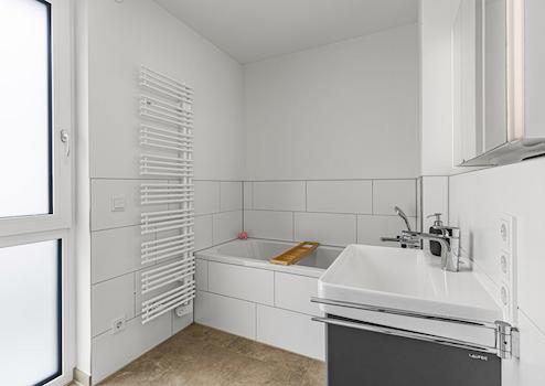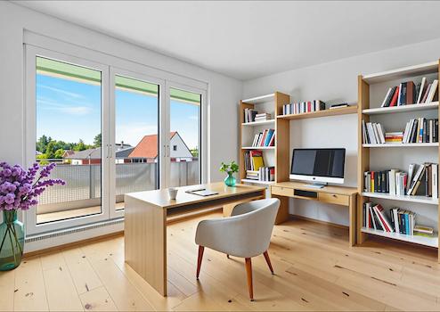 Die Dachgeschossräume haben unterschiedliche Größen, sodass Sie einmal über eine größere Dachterrasse verfügen und in der Haushälfte nebenan über mehr Raumfläche.