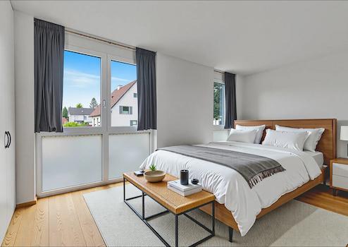 Alle Wohnräume sind mit einem Eichenparkett ausgestattet, welcher auf dem schwimmenden Estrich mit Wärme- und Trittschalldämmung verlegt ist.
