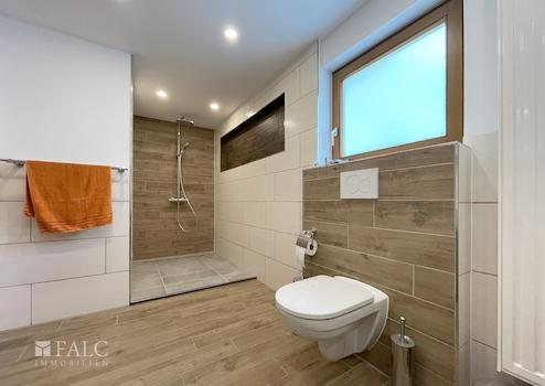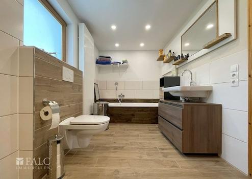 Das Badezimmer wurde kernsaniert und hochwertig ausgestattet - mit Dusche, Badewanne, neuen Leitungen und modernen Sanitärelementen. Das Gäste-WC erhielt ebenfalls eine neue Ausstattung.
