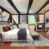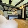 Das Schlafzimmer im Erdgeschoss besticht durch schöne Holzdielen, die dem Raum Wärme und Behaglichkeit verleihen. Auch eine Einbauküche ist bereits vorhanden und bietet viel Platz für individuelle Kochideen.