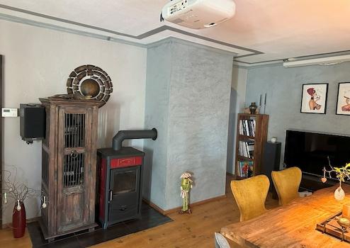 - Beheizung durch wasserführende Kamin (Kohle, Holz, Holzbriketts)
