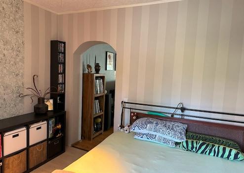 Das Haus verfügt über insgesamt fünf Zimmer, davon drei Schlafzimmer und zwei Badezimmer. Die Zimmeraufteilung erstreckt sich über zwei Etagen, wodurch genügend Platz für die ganze Familie geboten wird. Ein Keller mit einer Fläche von 82 m² bietet zusätzlichen Stauraum und Möglichkeit für Hobbyräume.