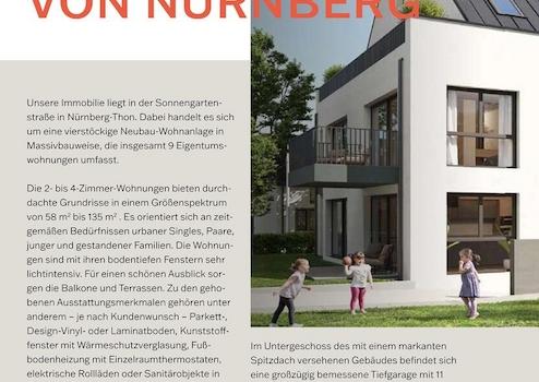 Der überaus beliebte Nürnberger Stadtteil Thon bietet eine Vielfalt an Einkaufsmöglichkeiten sowie kulinarische und kulturelle Angebote. Ärzte, diverse Schulen, ein Kindergarten sowie zahlreiche Möglichkeiten zur sportlichen Betätigung sind vorhanden und allesamt fußläufig oder mit dem Fahrrad erreichbar.