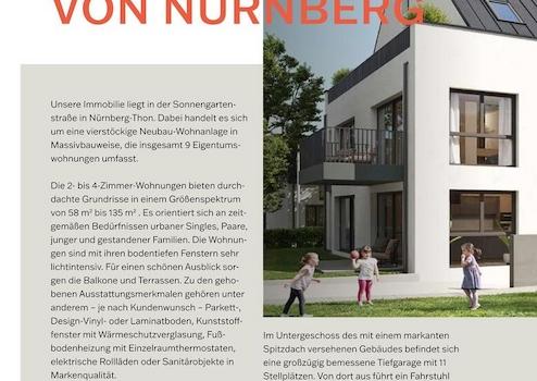 Der überaus beliebte Nürnberger Stadtteil Thon bietet eine Vielfalt an Einkaufsmöglichkeiten sowie kulinarische und kulturelle Angebote. Ärzte, diverse Schulen, ein Kindergarten sowie zahlreiche Möglichkeiten zur sportlichen Betätigung sind vorhanden und allesamt fußläufig oder mit dem Fahrrad erreichbar.