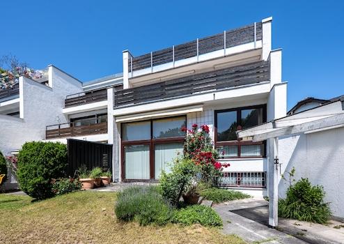 Das Haus verfügt über insgesamt sechs Zimmer, davon vier geräumige Schlafzimmer, die jeweils Zugang zu einem der drei Balkone haben. Hier können Sie den Tag entspannt ausklingen lassen und den Blick in den gepflegten, kleinen Garten genießen. Ein Highlight ist die großzügige Dachterrasse, die viel Platz für gesellige Abende oder entspannte Stunden in der Sonne bietet.