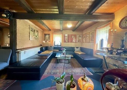 Mit ca. 240 qm Hauptnutzfläche, zusätzlichem Dachgeschoss mit Ausbaupotenzial, großzügigen Nebengebäuden auf über 230 qm Grundfläche und einem weitläufigen Garten mit Pool-Teich und Terrasse eröffnet sich hier ein einmaliger Raum für kreative Lebensentwürfe.