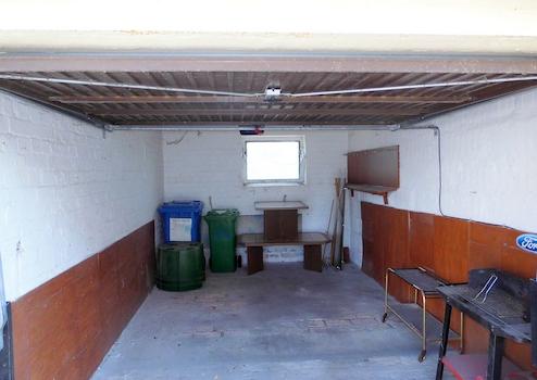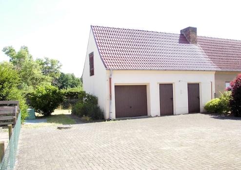 Das 500 m² große Grundstück ist straßenseitig mit einem schmiedeeisernem Zaun eingefriedet und über die gepflasterte Auffahrt bis zum Innenhof befahrbar. Hier befindet sich die Garage mit Werkstatt und Waschküche. Dahinter befindet sich eine Gartenfreifläche.