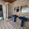 Ein "blaues Bad" für die Kinder mit Dusche, zwei Waschtischen, WC