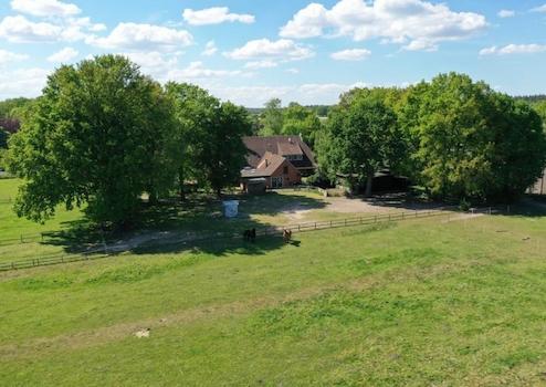 Dieses herrliche Anwesen aus dem Jahr 1940 ist 1980 komplett neu umgebaut, aufgebaut und saniert worden. Es besticht durch seine großzügige Wohnfläche von 418 Quadratmetern (Haupthaus und vermietete Einliegerwohnung), Stallungen für die Pferde, Nebengebäude und einem weitläufigen, parkähnlichen Grundstück.