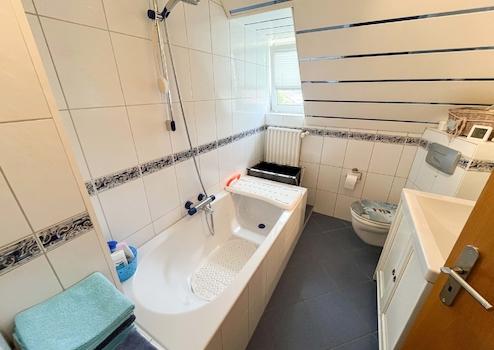 - ein Badezimmer aus dem Baujahr, eins wurde 2014 saniert