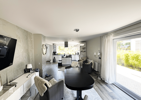 Das Herzstück des Hauses bildet der offen gestaltete Wohn- und Essbereich mit direktem Zugang zur Küche und zur sonnigen Terrasse – ideal für entspannte Stunden im Freien.