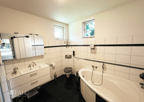 Die moderne Einbauküche ist mit hochwertigen Geräten ausgestattet und fügt sich harmonisch in das stilvolle Wohnambiente ein. Die sanitären Anlagen wurden ebenfalls vollständig modernisiert (EG in 2017, OG in 2006): Die Tageslichtbäder mit Dusche (EG) und Badewanne (OG) bieten zeitgemäßen Komfort.