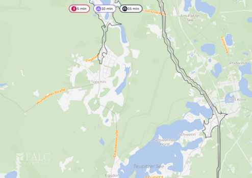 Historische Sehenswürdigkeiten wie das Berliner Tor und das Heimatmuseum sind nur einen kurzen Spaziergang entfernt. Die Autobahnauffahrt A 13 ist in ca. 2,5 Km erreichbar, was eine schnelle Verbindung zu den umliegenden Städten ermöglicht. Der nächste Flughafen, Berlin Brandenburg, ist ca. 20 Kilometer entfernt und bietet eine bequeme Anbindung für Reisende.
