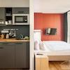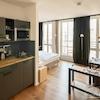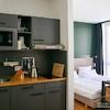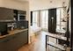 • Jedes Design-Apartment verfügt über eine voll ausgestattete Küchenzeile und Eichenholzböden.