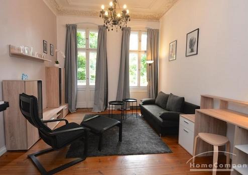 Komplett eingerichtete 3-Zimmer-Wohnung im Herzen von Prenzlauer Berg mit Balkon, Bad mit Dusche, Fernseher, W-LAN. Helles Wohnzimmer mit Sofa, Schreibtisch, Fernseher und Klavier.