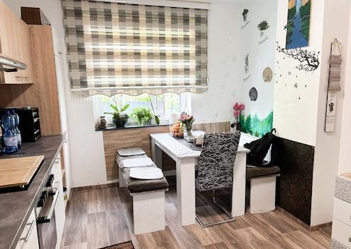 Diese Doppelhaushälfte wurde ca. 1916 in massiver Bauweise auf einem großen Grundstück errichtet. Die Wohnfläche verteilt auf zwei Etagen und vier Zimmer. Vom zentralen Flur im Erdgeschoss gelangen Sie in die Küche, den Essbereich, das Wohnzimmer, Badezimmer sowie zum Zugang zur Terrasse und in den Garten – für entspannte Stunden im Freien. Im Kellergeschoss befindet sich noch zusätzlicher Stauraum und die Heizung. Im Obergeschoss stehen Ihnen zwei gut geschnittene Zimmer zur Verfügung. Zusätzlich wurde das Dachgeschoss ausgebaut und kann flexibel – beispielsweise als großes Schlafzimmer – genutzt werden. Die Beheizung erfolgt über eine Gas-Zentralheizung, die innerhalb der vergangenen 15 Jahre erneuert wurde. Alle Fenster wurden ca. im Jahr 2000 durch Kunststofffenster mit Isolierverglasung ersetzt. Das Badezimmer wurde vor etwa 10 Jahren modernisiert und mit einer Eckbadewanne sowie einer separaten Dusche ausgestattet. Ein Carport befindet sich direkt am Haus und rundet das Angebot vollständig ab.