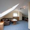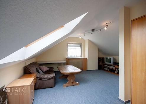 Das Dachgeschoss beherbergt ein weiteres Zimmer, das als Studio oder Hobbyraum genutzt werden kann. Die Dachschrägen verleihen dem Raum eine gemütliche Atmosphäre.