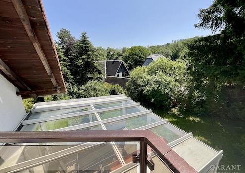 Auch das Dachgeschoss ist vollständig ausgebaut und bietet eine zweite Wohneinheit mit Wohnzimmer, Küche, Bad und zwei weiteren Zimmern. Der Balkon öffnet den Blick in den gepflegten Garten - ein Ort für entspannte Sommerabende.