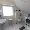 Modernes Badezimmer mit Dusche, Waschmaschine und Tageslicht