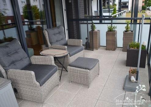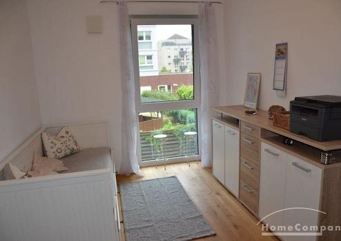 3 Zi.Whg., möbliert, 1. OG Mitte, mit gr. Balkon (Loggia). Moderne, barrierefreie Ausgestattung. Eichenparkett, Fußbodenhzg., 2 TV, W-Lan. Wohnzimmer, Schlafzimmer sowie ein drittes Zimmer, das individuell als Büro oder Kinder- bzw. Gästezimmer genutzt werden kann. Waschmaschine + Trockner in sep. Raum. Alle Fenster sind mit elektrischen Aussenrollos ausgestattet. Fahrradkeller zur Nutzung im Hause, ebenso ein Wäscheraum bei Bedarf.