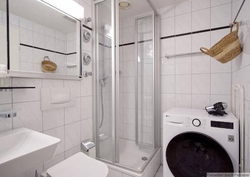 Eine Waschmaschine steht im Duschbad zur Verfügung.