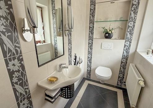 Die Immobilie hat zwei Tageslichtbäder sowie ein Gäste-WC. Ein Highlight des Hauses ist der Kamin im Wintergarten, der für gemütliche Abende am Feuer sorgt sowie die Garage mit Abstellraum.