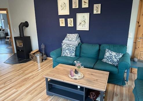 Der Kaminofen im Wohnzimmer wurde in 2020 angeschafft und darf weiterhin betrieben werden.