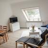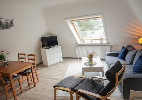 Im Dachgeschoss befinden sich die 3-Zimmer-Ferienwohnung "Backbord" mit Küche, Wohnzimmer mit Zugang zum Balkon, Schlafzimmer und Kinderzimmer sowie die 2-Zimmer-Ferienwohnung "Steuerbord" mit Wohn- und Schlafzimmer, sep. Schlafzimmer, Küche mit Einbauküche, Tageslichtbad mit Dusche und WC.